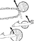 Kickback occurs when the moving saw chain near the upper quadrant of the bar nose contacts a solid object or is pinched. The reaction of the cutting force of the chain causes a rotational force on the chainsaw in the direction opposite to the chain movement. This may fling the bar up and back in an uncontrolled arc mainly in the plane of the bar. Under some cutting circumstances the bar moves towards the operator, who may suffer severe or fatal injury. Kickback may occur when the nose of the guide bar is pinched unexpectedly, unintentionally contacts solid material in the wood or is incorrectly used to begin a plunge or boring cut. It may also occur during limbing. The greater the force of the kickback reaction, the more difficult it becomes for the operator to control the saw. Many factors influence the occurrence and force of the kickback reaction. These include chain speed, the speed at which the bar and chain contact the object, the angle of contact, the condition of the chain and other factors.