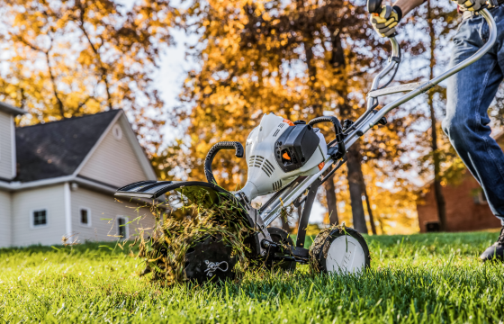 stronger grass growth. Aeration may require specialized equipment like a STIHL YARD BOSS®, a