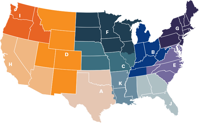 Indiana, Kentucky, Michigan – Lower Peninsula, Ohio,