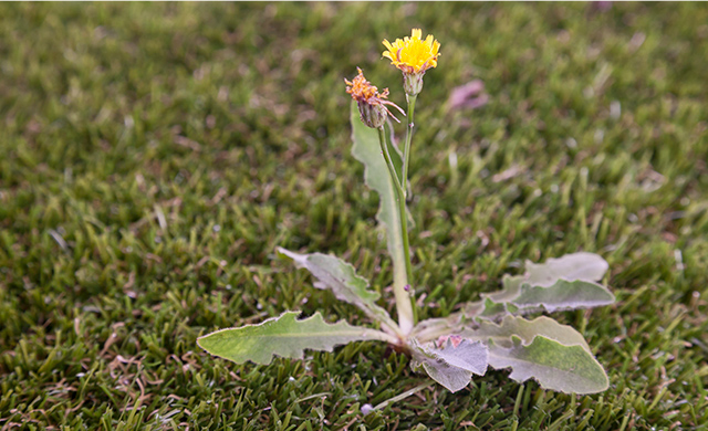 Weeds such as dandelions, thistles, clover and weed grasses are one of the most common lawn problems. Large numbers of weeds are normally an indication of a lawn suffering from poor nutrient levels. Fertilizer is the ideal solution in such cases. Frequent mowing at a high cutting height acts as an additional defense against the growth of weeds by preventing access to the light needed for germination. Using good-quality seed is also a factor that should not be overlooked. In addition, carrying out regular and deep aerating is an effective method of preventing weeds from invading in the first place. However, digging weeds out which have taken hold remains the best, and often only, solution.