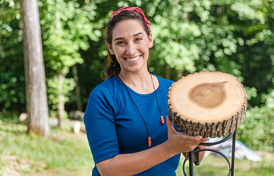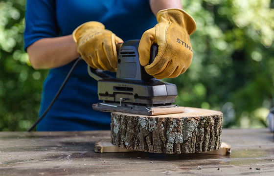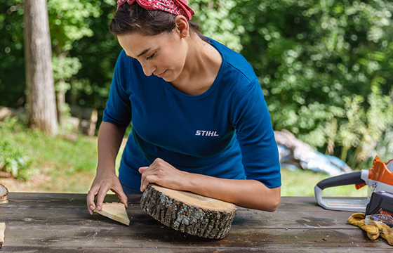 Using wood cookies cut from logs, these side tables improve the aesthetic of your outdoor space while also adding some utility to your patio décor