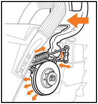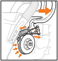 When front handguard is in the rearward position, brake band is disengaged.