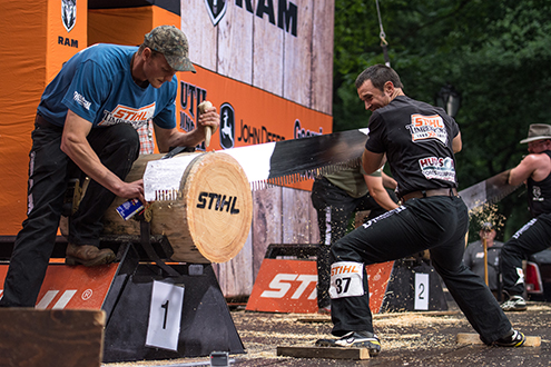 STIHL TIMBERSPORTS® athletes train in a manner that is often based upon their athletic background but is fundamentally movement specific. Most athletes come to the sport from different backgrounds, and from that he or she has an understanding or an idea of what it takes to become fit. Just as with any athletic endeavor, the real job is mastering the skill that defines the sport. The skills in STIHL TIMBERSPORTS are a combination of strength, stamina, body mechanics and timing. To hone each of those areas, the athlete must work on the fundamentals of strength, general fitness, hand eye coordination and flexibility.