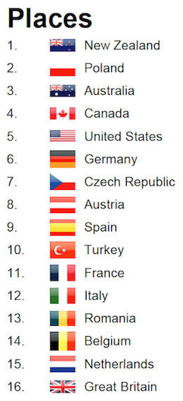 Heat 16 01:06.67 Poland 00:51.76 New Zealand